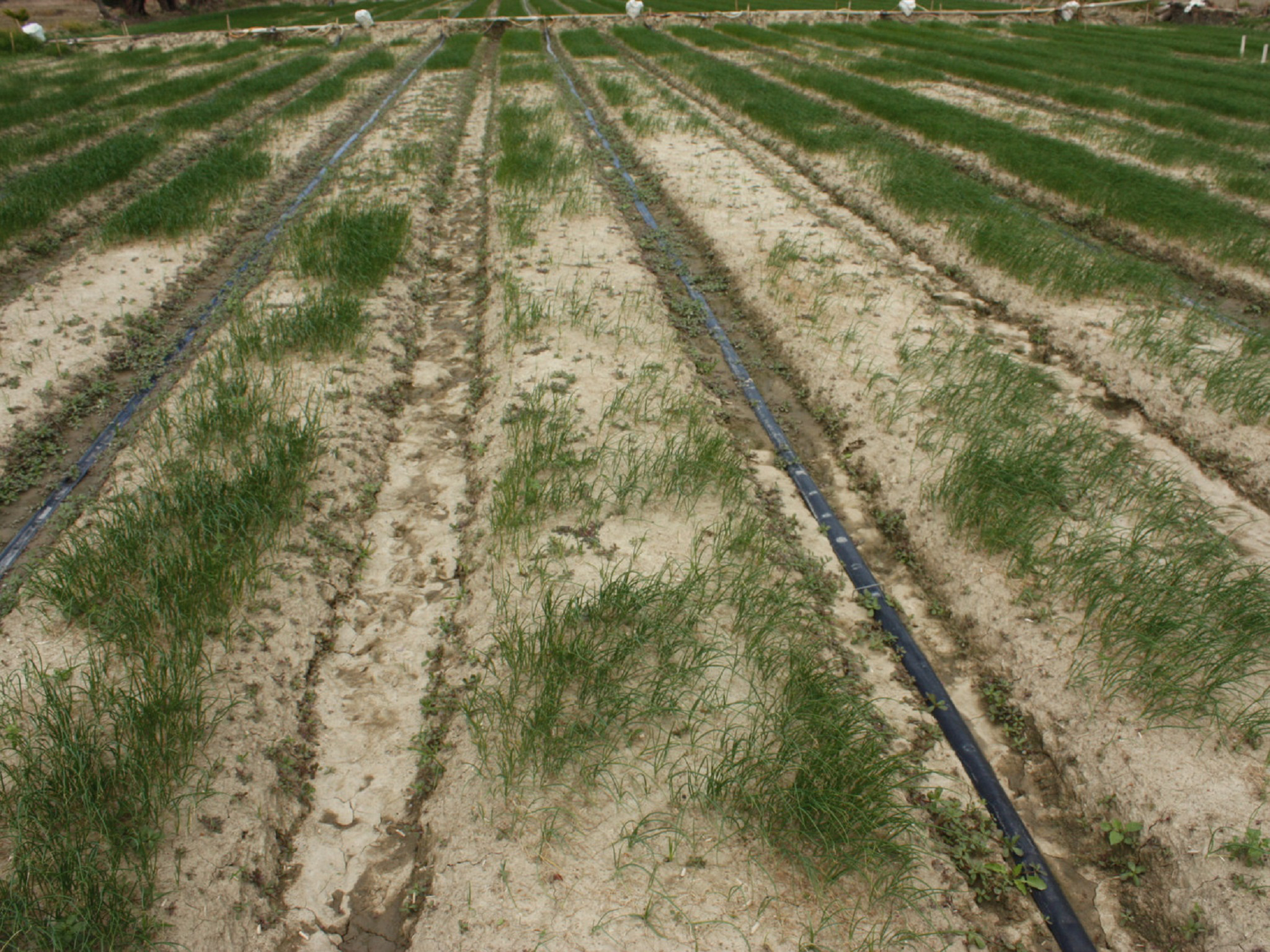 洋蔥育苗期感染黃萎病,易造成缺株情形。(圖片來源:行政院農委會提供)