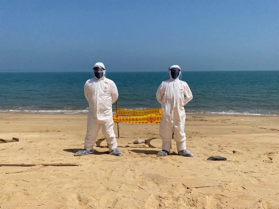 2020年4月16日,有民眾於烈嶼鄉青岐岸際發現豬隻屍體。經檢驗後,確認染有非洲豬瘟病毒。(圖片來源:金門縣防疫所提供)