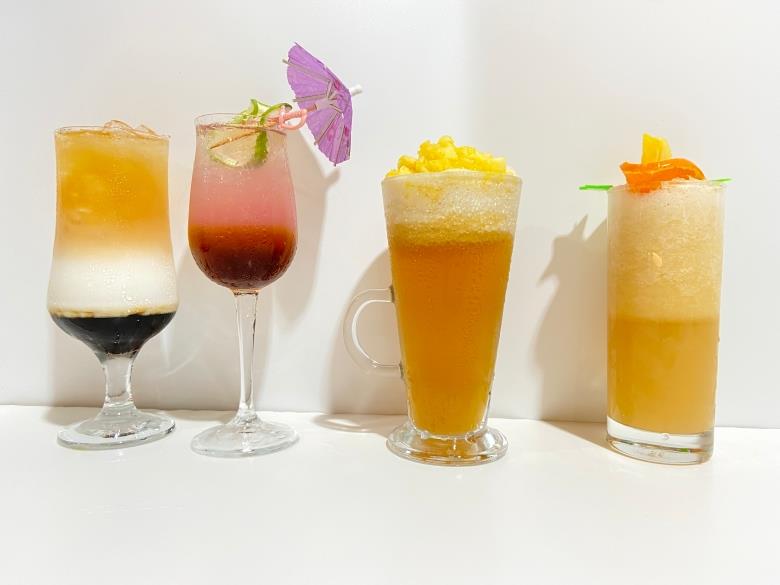 2、鳳鷺冰沙:以台茶17號(白鷺)烏龍茶為基底茶,此款茶葉利用微生物醱酵技術發酵後,帶有有鳳梨、楊桃、水蜜桃風味,調飲時再搭配本土鳳梨提味,口感清爽並帶有濃濃的鳳梨味與茶香。