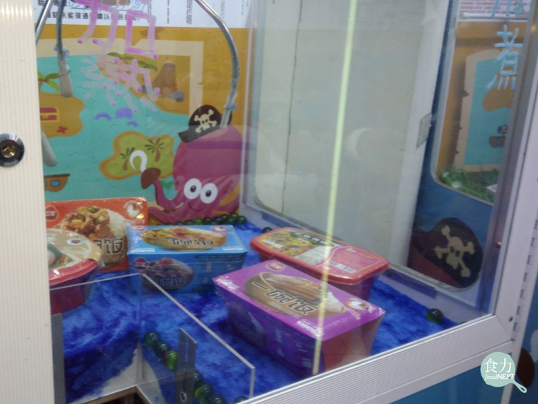 新北市淡水新民街有一個夾娃娃機台擺設了中國製食品供民眾投幣夾取,其中「梅干扣肉飯」、「家常豆腐飯」2種商品均含豬肉成分。