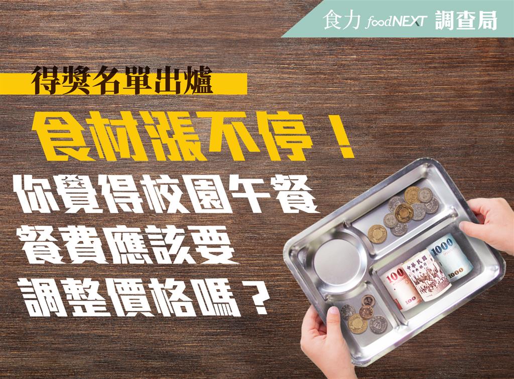 回列表 【食力調查局】食材漲不停!你覺得校園午餐餐費應該要調整價格嗎?問卷得獎名單出爐! 2022/03/23 0 不愛 21900 0 0 你應該要知道的食事 目前全國各縣市校園午餐價格平均約35~47元,但現在面臨通貨膨脹、烏俄戰爭導致國際供應鏈不穩定,食材與原物料價格飆漲,但供應孩童每日校園午餐的餐費卻是一個敏感議題,你覺得校園午餐應該漲價嗎? 0 不愛 21900 0 0 分類精選文章 從黑豆蛋白粉到黃金脆薯塊:2025「十大嚴選穀得」展現國產穀物新面貌 2025年十大嚴選穀得競賽聚焦能真正走入日常生活的國產穀物加工品,從即食、休閒零食到飲品皆呈現高度創新。得獎作品包括甘藷脆片、黑豆蛋白粉、烤玉米粒、紅豆黑糙米飲等,展現國產穀物的多元應用。所有得獎產品將於2025年12月6日至2025年12月7日在中正紀念堂展銷活動中亮相。 16 0 0 味噌鍋、花壇茉莉花茶、初榨椒麻飲都可免費試吃!全台最大「食驗室」新品體驗全由你選 全台最大免費試吃平台「食驗室」,2025年11月提供7檔免費試吃檔期,共吸引超過1.1萬人次關注,近2千名《食力》會員申請免費試吃體驗,試吃品包含零食、茶飲、和調味料等。你心動了嗎?趕快免費加入《食力》會員,眾多新品等你來品嚐! 703 0 0 年度唯一齊聚必勝客、林聰明、金色三麥、好嶼等9大講者!2025飲食創新大論壇售票倒數中 2025飲食創新大論壇將於12月11日登場,必勝客、林聰明沙鍋魚頭、金色三麥、奇美食品、美廉社等9位產業領袖將同台分享品牌突破與市場突圍的核心策略,涵蓋餐飲、零售、永續與農業多個關鍵領域。今年為少見的跨界完整陣容,將以實務案例解析台灣飲食產業的下一階段競爭力。優惠套票已進入最後倒數,名額有限,敬請把握。 680 0 0 日本「草莓王國」栃木縣12/18美味登陸高雄!和牛、草莓、日光梨、清酒全員到齊 栃木縣將於2025年12月18日在高雄美麗島站舉辦魅力推廣活動,活動現場會展出「栃愛果(Tochiaika)」等多品種草莓、縣內原創的大顆梨「日光梨(Nikkori)」、被列入聯合國教科文組織(UNESCO)非物質文化遺產、支撐日本和食文化的品牌米「栃木之星」,以及在全國規模評比中多次榮獲最高獎項的名牌牛「栃木和牛」等,應有盡有,魅力十足。 1646 0 0 西班牙爆發非洲豬瘟、即日全面暫停豬肉進口 高端伊比利豬與火腿供應拉警報 西班牙 31 年後再度爆發非洲豬瘟,台灣自今日起全面禁止輸入西班牙活豬與豬肉產品。受到市場高度關注的伊比利豬與伊比利火腿,短期內也將面臨斷供風險。西班牙近三年輸台量僅次於加拿大,疫情升溫使餐飲端與零售端的供應變動備受矚目。主管機關同時提醒,切勿自疫區攜帶或郵寄豬肉製品回台,違者將重罰。 7564 0 0 2025花蓮食農博覽會27日至 30日登場 認識種子、無人機、農藥殘留質譜快檢食農全體驗 你應該知道的食事 花蓮縣政府為深化民眾對食農教育的認識與實踐,將於 2025年11月27日至11月30日,在日出大道F段(重慶市場旁)舉辦第四屆「2025花蓮食農博覽會」,以「從保種智慧到未來農場」為主題,有豐富展覽與互動體驗,與現地連結展現食農力量。 5420 0 0