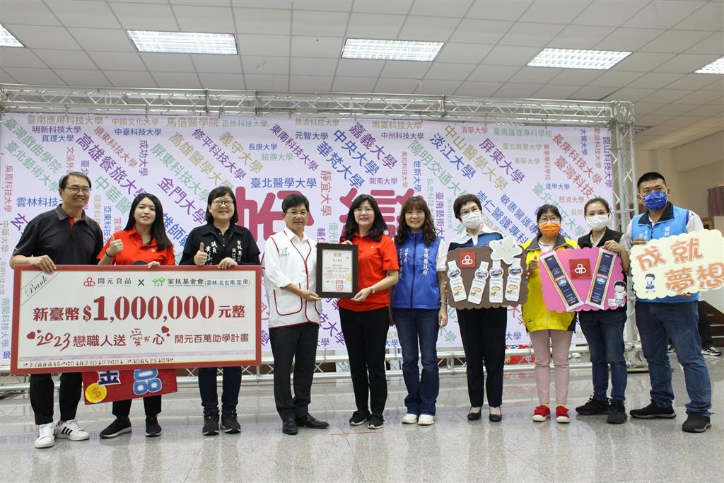 2023年開元食品「戀職人送愛心 開元百萬助學計畫」獎助學金頒發儀式移師雲林,結合當地家扶中心一同舉行獎助學金頒發典禮。開元食品長期關注弱勢孩童的營養與教育,2023年百萬助學獎金幫助了雲林、北台南、宜蘭弱勢兒少,價值百萬的戀職人愛心鮮奶亦將於年底配送全台家扶中心,實際參與給予行動支持。