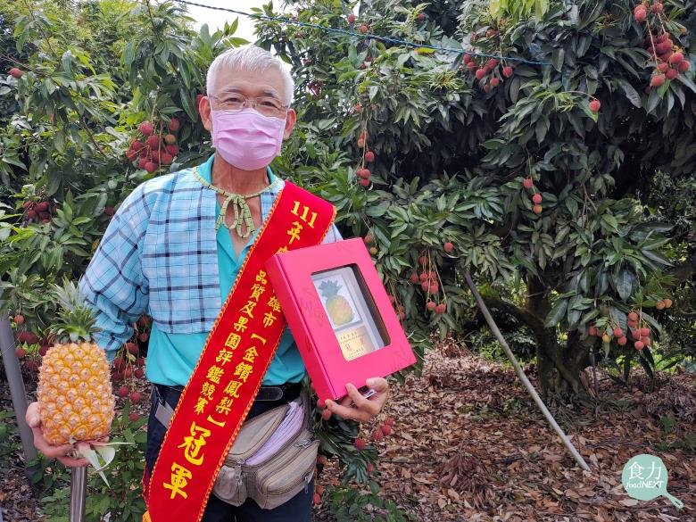 以栽植金鑽鳯梨獲得2022年評鑑競賽冠軍的得壘園農場場主尤峻,是獲獎常勝軍,因糖度足夠與適口度奪冠。尤峻表示,他原以種植荔枝為主,但氣候衝擊著果率且蟲害防治實在不易,目前轉攻栽植金鑽鳳梨。