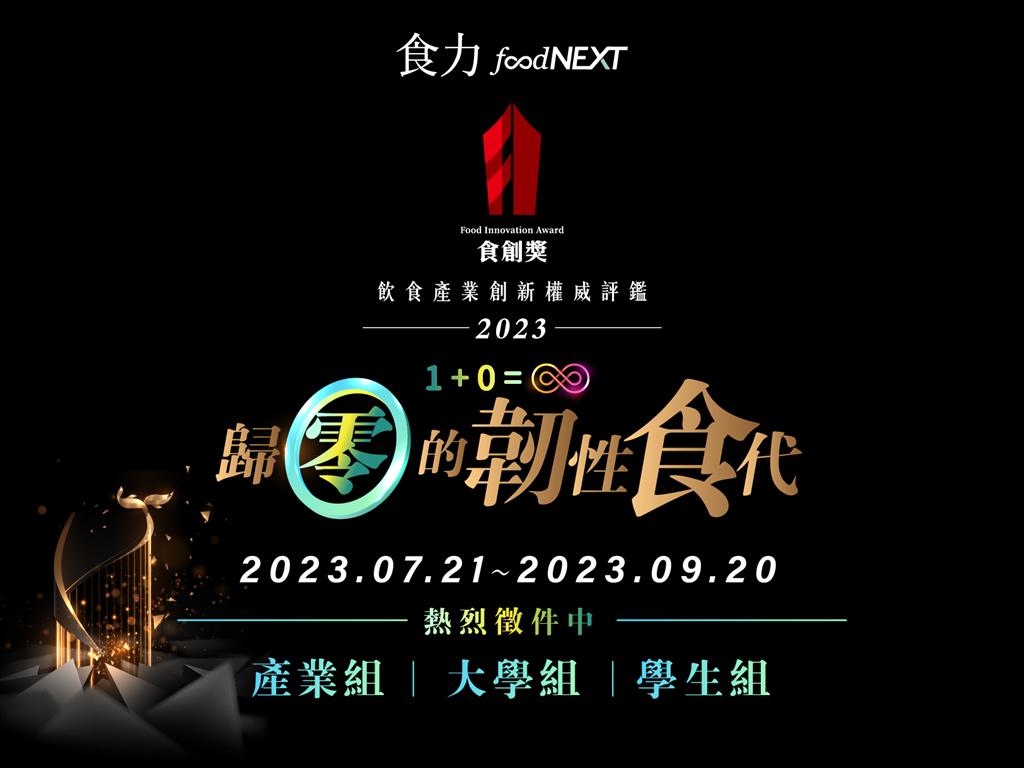 「2023食創獎」由飲食產業專業媒體《食力foodNEXT》以及台灣第一飲食募資平台《拾光Food Chill》並攜手全球市場研究公司「Innova Market Insights」盛大開辦。本屆主題為「1+0=∞ 歸零的韌性食代」,在數位化世代充斥著0與1的訊號裡,「2023食創獎」鼓勵飲食產業業者以「1」的起點背後乘載無數個「0」,象徵藉由淨零排放迎接未來永續「食」代的無限種可能性,共創你我的韌性「食」代。