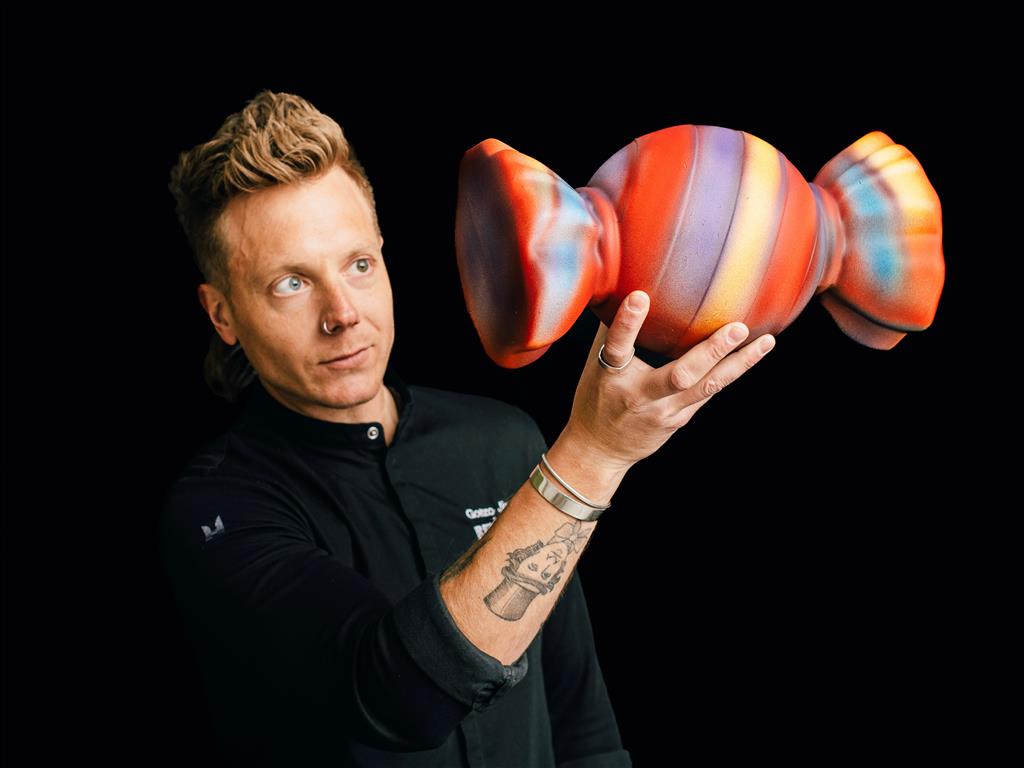 在阿根廷出生、擁有西班牙血統,成年後旅居美國的多元經歷,讓Gonzo Jimenez認為自己甜點創作同時融合了三個地方的風格,技術精湛、創意奔放的他,就像是甜點創作的當代藝術家,善於呈現吸睛巧思、營造話題,讓巧克力作品既精緻無比又同時帶有童趣,吸引普羅大眾目光,引起搶購風潮。