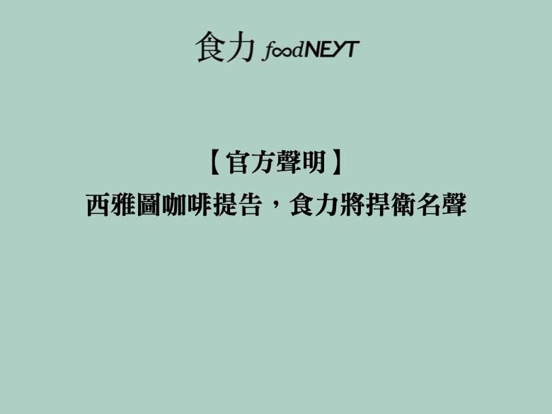 針對《食力》報導「西雅圖咖啡大濾掛產品」相關新聞內容、卻遭西雅圖咖啡控告一事予以聲明。《食力》為針對網友提出產品可能標示不實的疑問,詢問食藥署相關標示法規該如何標示才合法,並無刻意針對西雅圖咖啡品牌來報導。此報導內容符合「可受公評之事」定義,也並未下架。