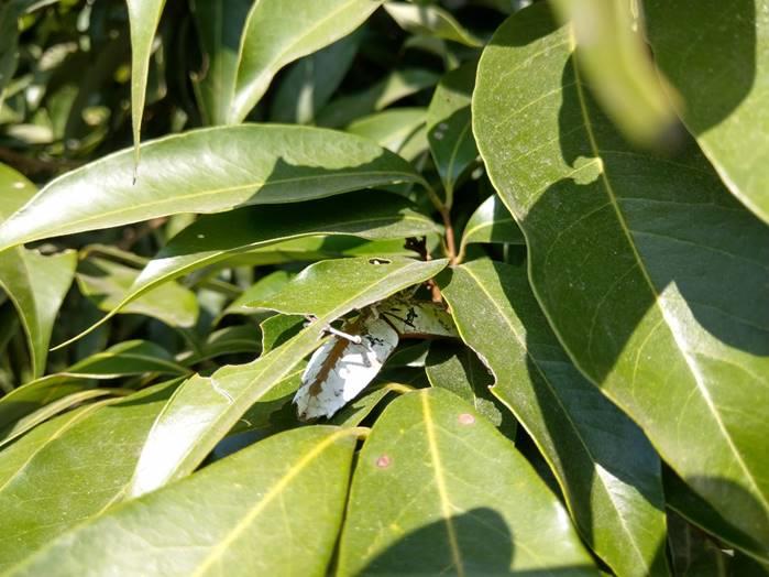 經長柄網撈捕調查,目前仍可在部分寄主植物上發現越冬中的荔枝椿象。(圖片來源:臺中農改場提供)