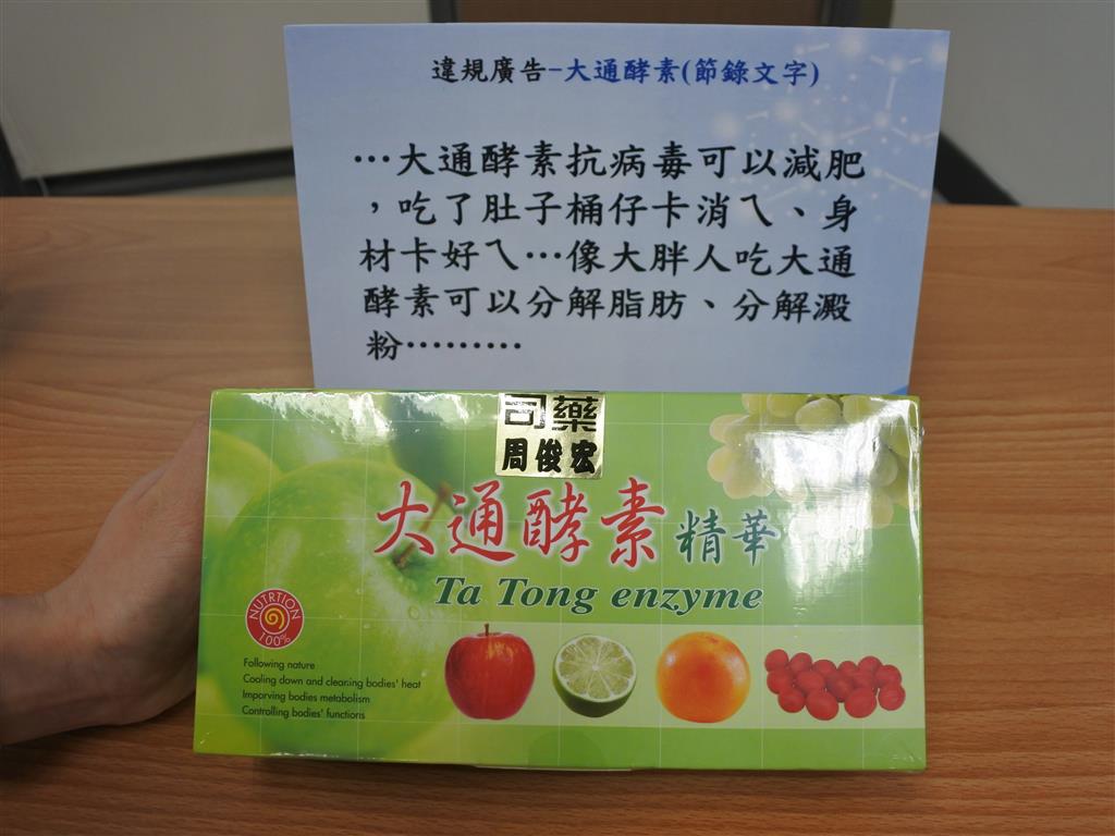 全球人口邁入高齡化,台灣也掀起一股樂活養生熱潮,保健商機隨之看漲,誇大廣告更是無所不在。食品藥物管理署(以下簡稱食藥署)統計2019年度電子媒體廣告監控數據發現,違規廣告次數排名前3名產品為PPLs、鴕鳥精及大通酵素,分別違規宣稱「…視神經退化…水晶體會濁…黃斑部會氧化…目睭仁老化…PPLs攏真好用…」、「…挽救骨質變空、筋骨退化和痠痛…」、「…可以減肥,吃了肚子桶仔卡消ㄟ、身材卡好ㄟ…像大胖人吃OOO可以分解脂肪、分解澱粉…」等內容,提醒民眾切勿輕信誇大不實的違規廣告,以免破財傷身!