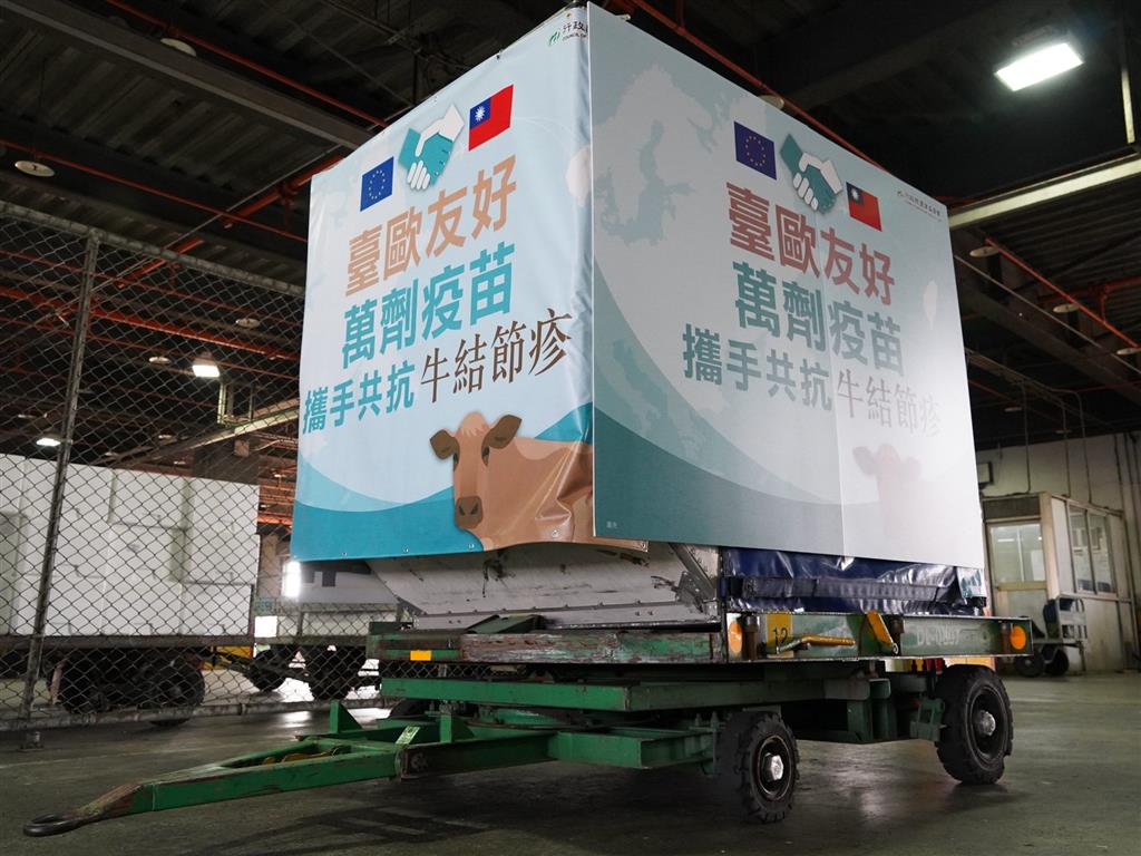 2020年7月22日,由歐盟捐贈的1萬劑牛結節疹疫苗,正式抵達桃園國際機場並通關,已立即送往空軍松山基地指揮部,將於晚間由軍機運輸至金門。行政院農業委員會(簡稱農委會)表示,預計7月23日開始進行疫苗施打,把握時機全力控制牛結節疹疫情擴散。