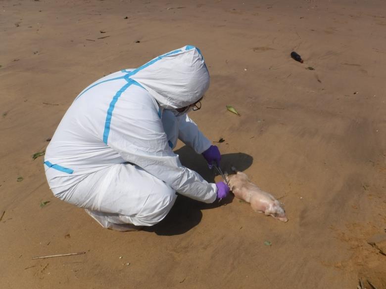 中央應變中心說明,金門縣動植物防疫所12日接獲烈嶼鄉公所通報,在烈嶼鄉近沙溪堡海邊執行淨灘活動時發現1頭死亡豬隻,該所會同金門岸巡總隊立即趕赴現場了解,採集相關檢體後,將豬隻屍體就地焚燒掩埋,檢體送畜衛所檢驗。相關檢體經畜衛所以聚合酶鏈反應(PCR)進行檢測,結果非洲豬瘟病毒核酸檢測結果呈陽性反應,基因片段序列與中國非洲豬瘟病毒株基因片段,相似度達100%。中央應變中心補充,發現地點已由金門縣動植物防疫所完成澈底消毒,該地區周邊半徑3公里內無養豬場。