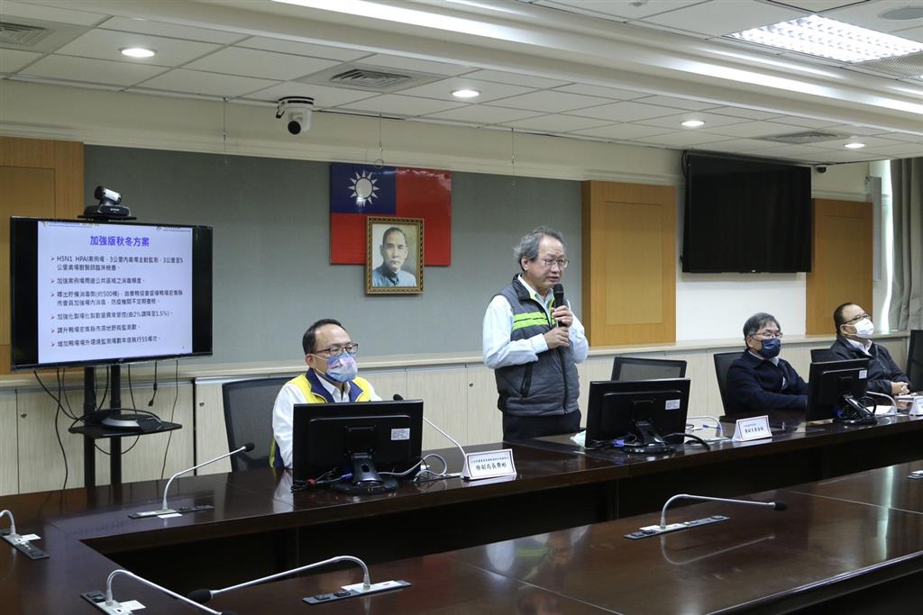 行政院農業委員會(簡稱農委會)表示,2022年12月26日陳吉仲主委邀集各直轄市、縣(市)政府農政單位、動物防疫機關、畜牧處、家畜衛生試驗所及動植物防疫檢疫局(簡稱防檢局)共同召開全國動物防疫聯繫會議,就因應近期國內外H5N1亞型高病原性禽流感疫情進行交流與討論,並研擬防疫精進作為。