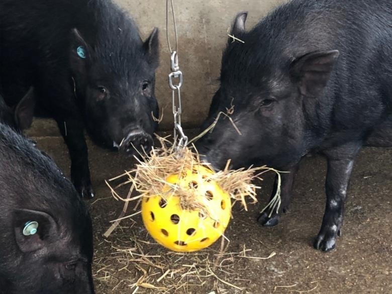 台東場表示,動物福祉是世界潮流,所有飼育動物者都應視為核心價值,其中透過環境豐富化減緩動物刻板行為,更是近年來受到重視的議題。台東場重視以豬為本的理念,由蘭嶼豬的角度探索週遭環境,觀察其習性與作息模式等,設計出適合蘭嶼豬之飼育環境,並強化畜舍豐富化程度,提供豬隻更優質的生活空間,未來仍持續不斷地精進,期能打造更符合「豬個性」之友善飼養生產體系。