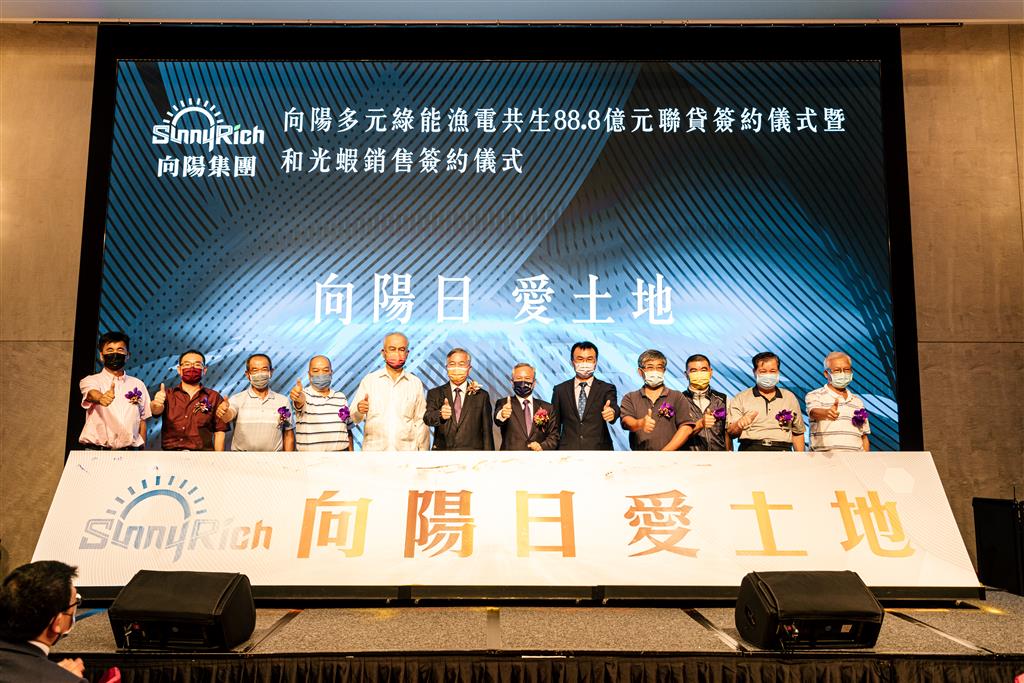向陽集團2022年8月9日舉行銀行團88.8億元聯貸案暨旗下公司向陽農業跟日本三井住友商事簽約儀式,兩案正式啟動後,代表向陽集團多元漁電共生計畫的重大突破,聯貸銀行團超額認購200%以上的熱況,意謂銀行支持向陽將投入更多資源於漁電共生發展,並擴大太陽光電溫室養殖的「和光蝦」市場。