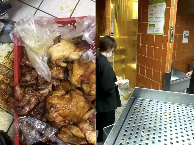 某自稱家樂福員工的網友在臉書「爆料公社」貼文指出:「我們是家X福重X店員工。決定冒著生命危險來爆料...因為公司規定每天賣不完的熟食都要報廢,不能賣隔夜的東西,但是家X福重X店的熟食課課長卻每天要求我們把沒賣完的烤雞,還有要報廢的滷味小菜收回塑膠袋放進冰箱,隔天再請早班加熱,放回架上!」(圖片來源:爆料公社)