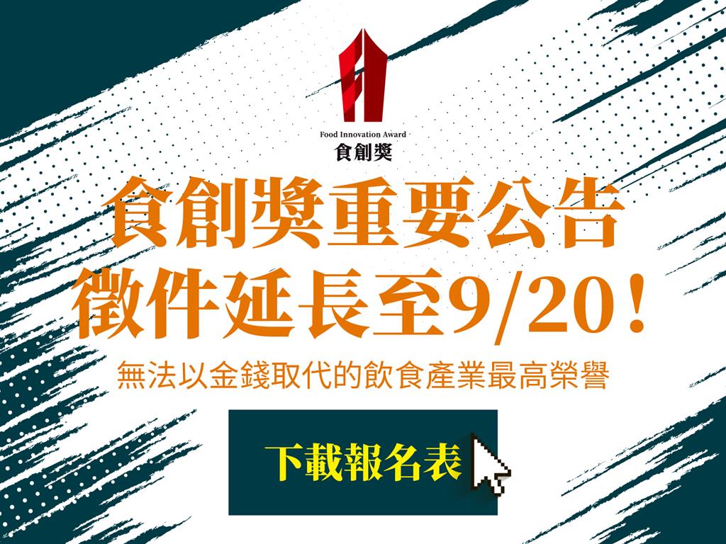 每年的飲食新品那麼多,每一個都有足夠的機會讓消費者認識嗎?別擔心,飲食產業專業媒體《食力》、台灣第一飲食群募平台《拾光》共同舉辦的飲食產業創新權威評鑑「食創獎」,將讓你的創新突破帶來被看見的機會!獎項報名已經起跑、延長報名至2024年9月20日為止,趕快下載報名表、在時間內上傳到食創獎官網,否則錯過就要再等一年!