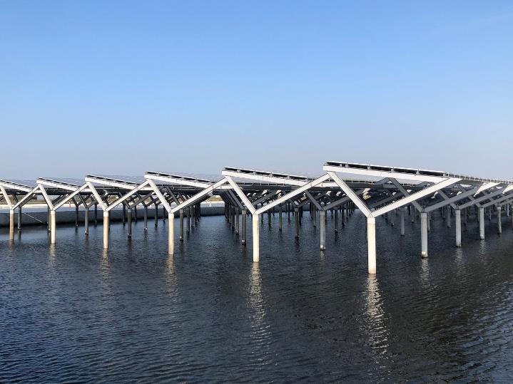 此外,考量實際養殖操作上可能會遇到相關問題,如設置浮動式光電板的魚塭如何曬池等,因此該所於臺南七股與雲林臺西規劃建置總面積廣達20公頃的漁電共生育成基地,提供綠能業者與農企業進駐,期在該所研究人員就近協助下,迅速解決遭遇之課題。
