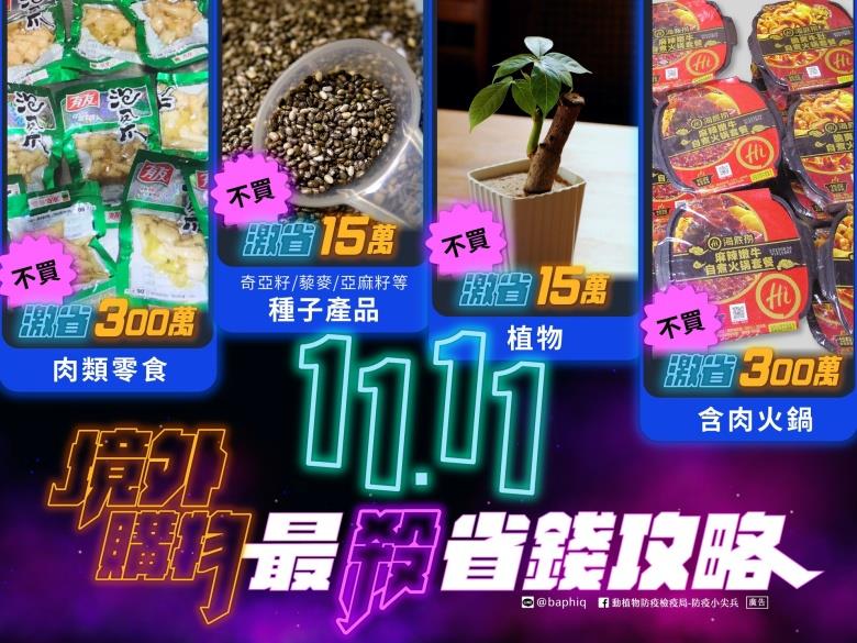 雙11網路大促銷才剛落幕,緊接而來的雙12網路促銷活動正誘惑民眾彈指搶購各項商品;農委會動植物防疫檢疫局(簡稱防檢局)表示,據歷年貨物通關資料顯示,近年底接連的雙11與雙12促銷活動期間,國人自國外購買動植物產品的數量大幅提升,增加境外重大動物傳染病與植物有害生物入侵台灣的風險。