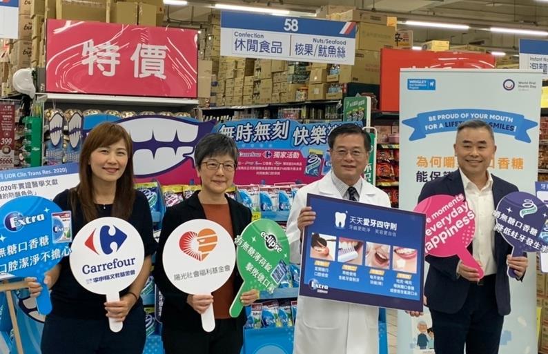 2024年世界口腔健康日的主題為「A HAPPY MOUTH IS… A HAPPY BODY」,持續與全球民眾溝通口腔健康的重要性。為加強提升國人口腔健康與身心健康重要關聯性的認知,台灣瑪氏股份有限公司(Mars Taiwan Limited)與家樂福合作推出2024年3月19日起至3月26日購買「Extra®無糖口香糖」、「Airwaves®無糖口香糖」或「Eclipse®無糖薄荷錠」指定商品,將捐贈2%的商品銷售業績,攜手家樂福文教基金會共同支持陽光社會福利基金會,推廣口腔保健與「2024年口腔癌病友服務暨防治計畫」。