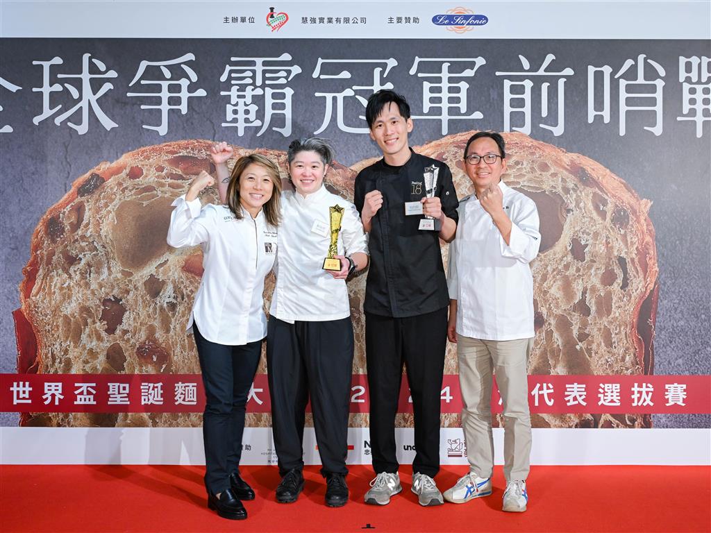 歷經將近3個月的報名與初選,世界盃聖誕麵包大賽2024台灣代表選拔賽決賽於2024年10月27日正式舉行!由「某某」法式甜點主廚賴怡君與「feelings18巧克力工房麵包」主廚蔡約群分獲冠亞軍,將與2023台灣代表隊成員吳寶春、陳詩絜組隊,2025代表台灣出征義大利,讓台灣再次榮耀國際。