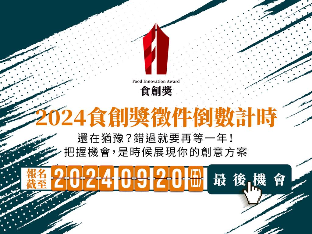 ▶錯過再等一年!「2024年食創獎」延長報名至9/20 把握展現創新的機會!