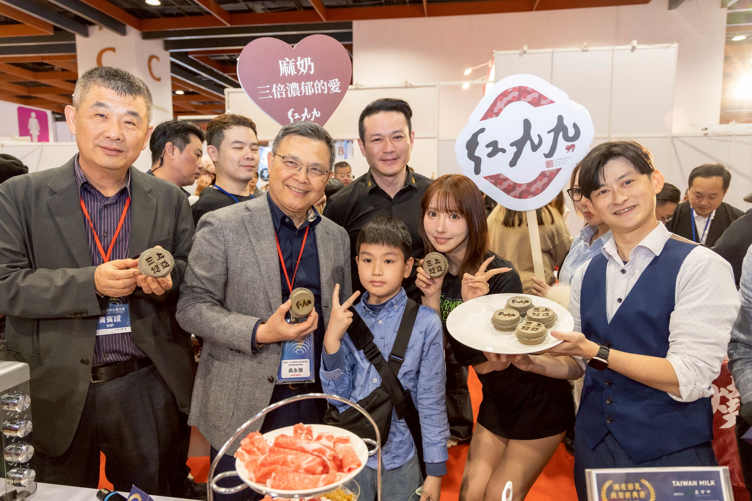 活動現場展示多款以國產鮮乳為基底的創意甜點與飲品,日本藝人三上悠亞在攤位體驗與品嘗作品,透過實際示範呈現鮮乳在餐飲產品中的風味表現與應用潛力。(圖片來源:台灣連鎖加盟促進協會提供)