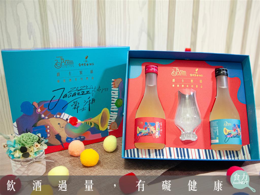 農業局表示,此次兩款聯名禮盒各限量500盒,均為經典匠心之作。「爵士蜜韻蜂蜜酒系列聯名禮盒」精選霧峰農會酒莊釀製的蜂蜜酒,包括荔枝蜂蜜酒、檸檬蜂蜜酒,並附上精緻品飲杯;蜂蜜酒以「爵士蜜韻」為靈感來源,將蜂蜜的自然甜香與爵士音樂的流暢旋律相互融合,為品酒愛好者帶來獨特的味覺饗宴。和平區農會輔導的青農則特別推出「梨山茶聯名禮盒」,精選自梨山高山茶區,讓茶葉的芬芳與爵士樂的悠揚旋律相得益彰,為茶藝愛好者打造別具一格的感官享受。