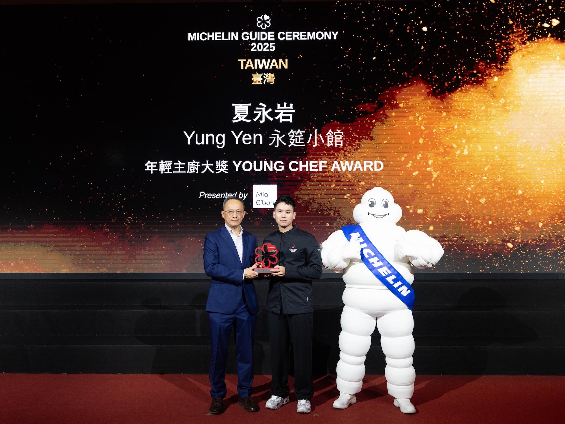 由Mia C’bon呈獻的米其林指南年輕主廚大獎主要表彰在米其林指南推薦餐廳中,擁有卓越天分與潛力的年輕主廚。今年的得主為高雄新入選必比登推介餐廳永筵小館的夏永岩主廚。