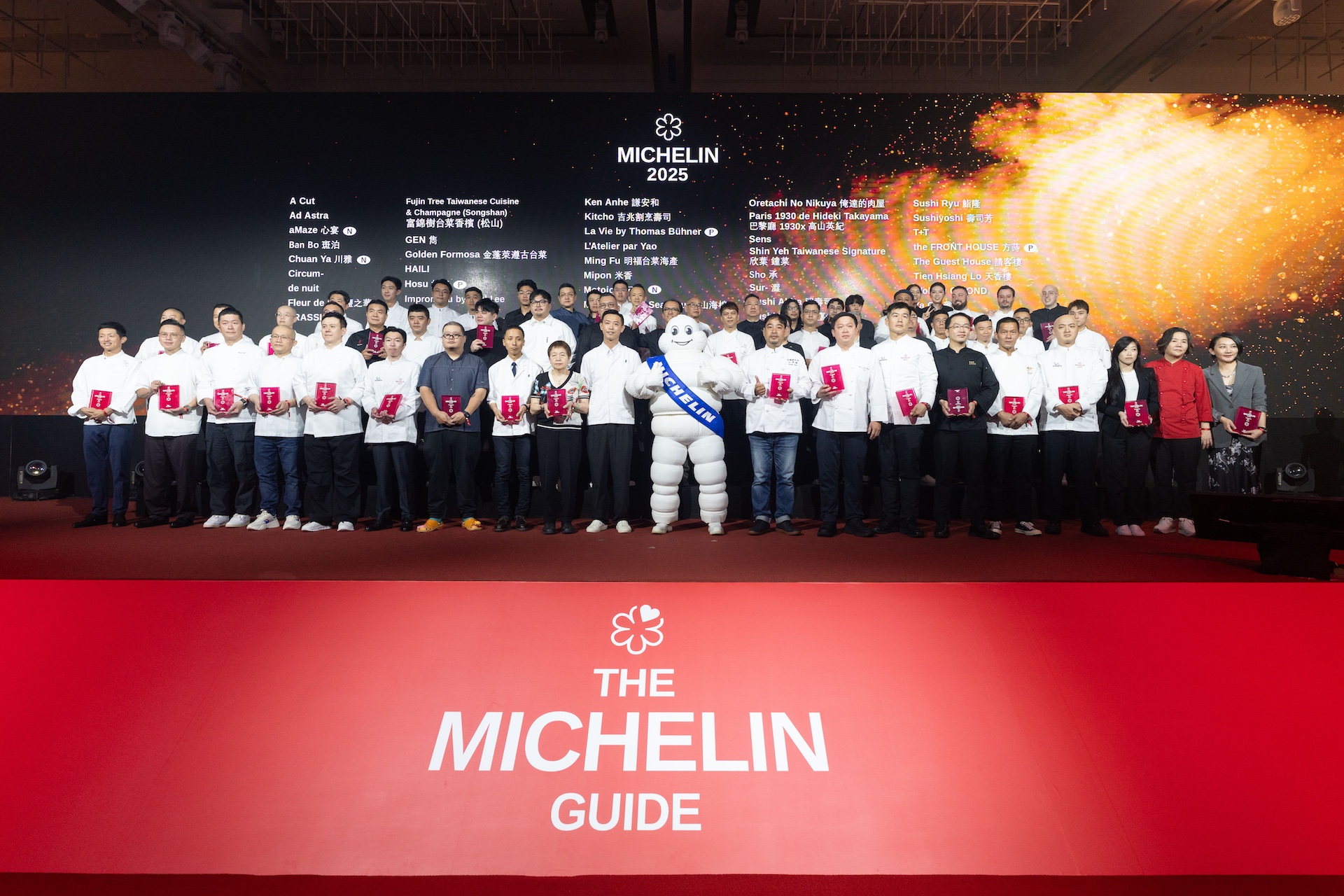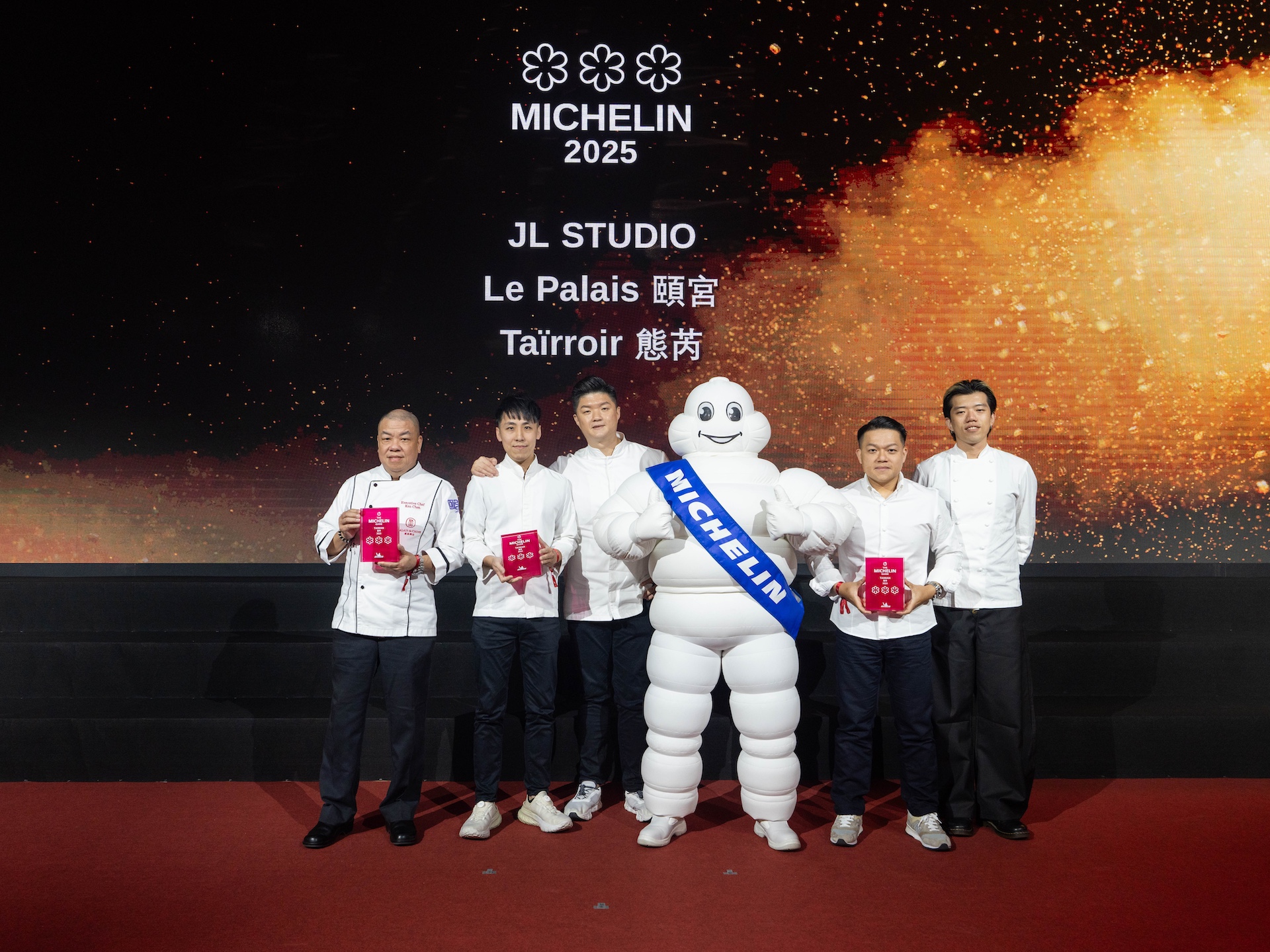 今年度是米其林指南成立125週年,繼2025年8月12日《臺灣米其林指南2025》公布必比登推薦名單公布必比登推薦名單,共有144家(台北37間、台中23間、台南30間、高雄24間、新北市15間、新竹縣8間、新竹市7間)入選之後,《臺灣米其林指南2025》於8月19日在台北漢來大飯店現場盛大公布,本屆評比範圍涵蓋台北、台中、台南、高雄,以及本屆新增的新北、新竹縣、新竹市,共有7個縣市。最終星等榜單全台共有53家餐廳摘星,其中有3家榮獲三星殊榮,為8度蟬聯的君品酒店粵菜餐廳頤宮中餐廳(Le Palais)、JL Studio、態芮。