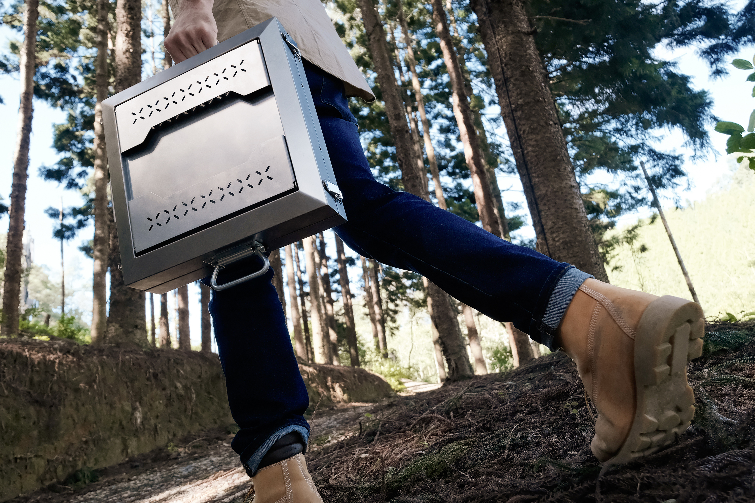 StoviGo重量約8.7公斤,可折疊至包款尺寸,方便攜帶至露營地、山海場域或任何聚會場所。全爐採用不鏽鋼材質,加上可拆結構,使用後僅需清洗隔板與爐網即可,大幅降低整理負擔。