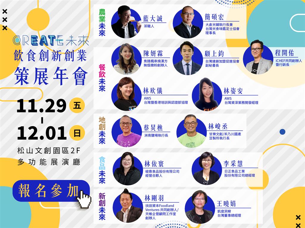 「crEATe未來」創新策展創業年會多項主題活動,讓飲食產業、踏入業界創業的夥伴有更多的資源交流、商業合作機會, 並且希望向飲食產業界以及消費者全面呈現飲食的多樣性與前瞻性。