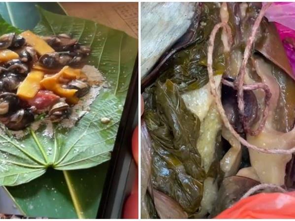 台東衛生局送驗標示的3件檢體,「血桐」、「蝸牛」及「食餘(蝸牛小米粽)」,在「食餘」檢出農藥殘留。(圖片來源:食藥屬提供)