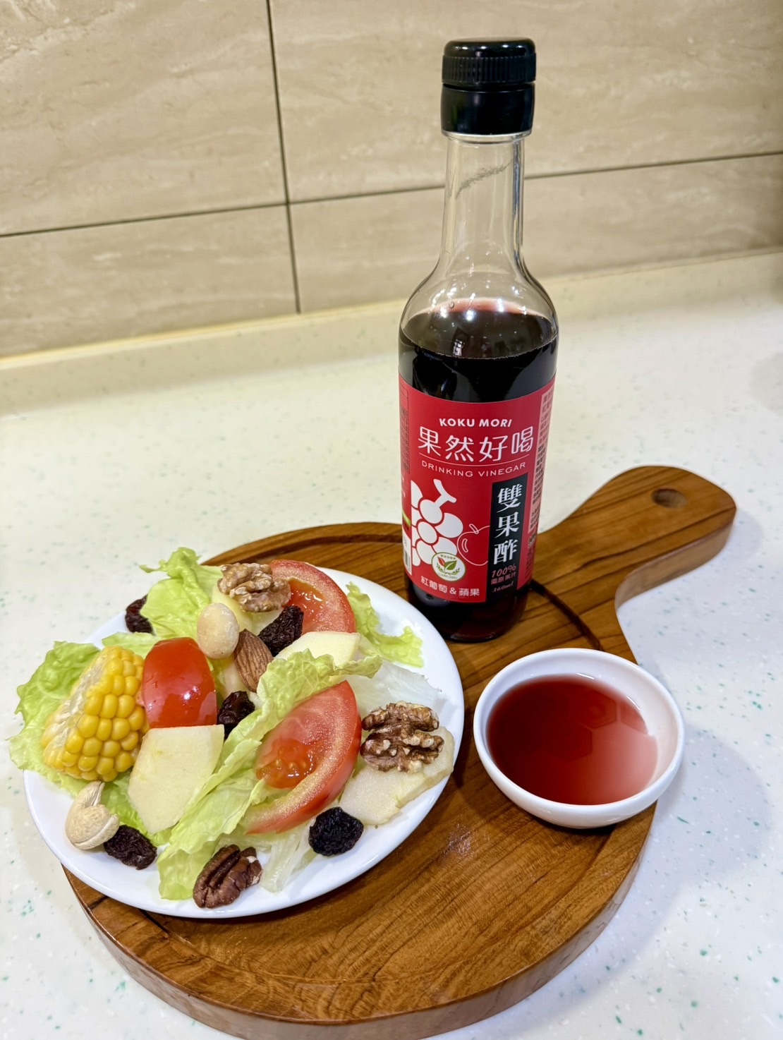 新北的Jung Yu分享,開蓋後兩種水果的果香慢慢散開,除了餐後解膩,也可以搭配沙拉,增添料理風味。(圖片來源:果然好喝雙果酢試吃體驗)
