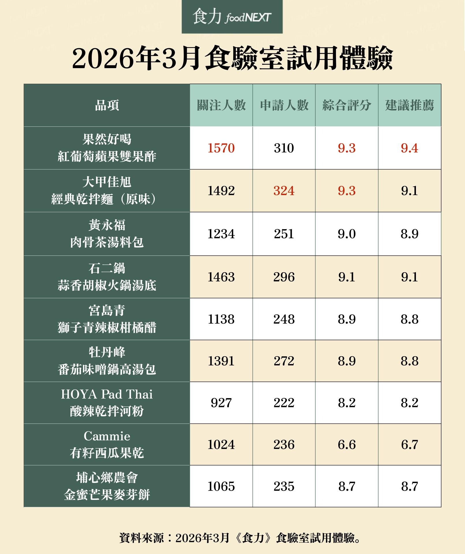 全台最大的免費試吃平台「食驗室」週週都有新驚喜!只要成為《食力》會員,就有機會免費把多樣好物帶回家,每檔名額最高多達100份。在2026年3月中,共推出了9檔活動,一起回顧這些超人氣的精選項目!