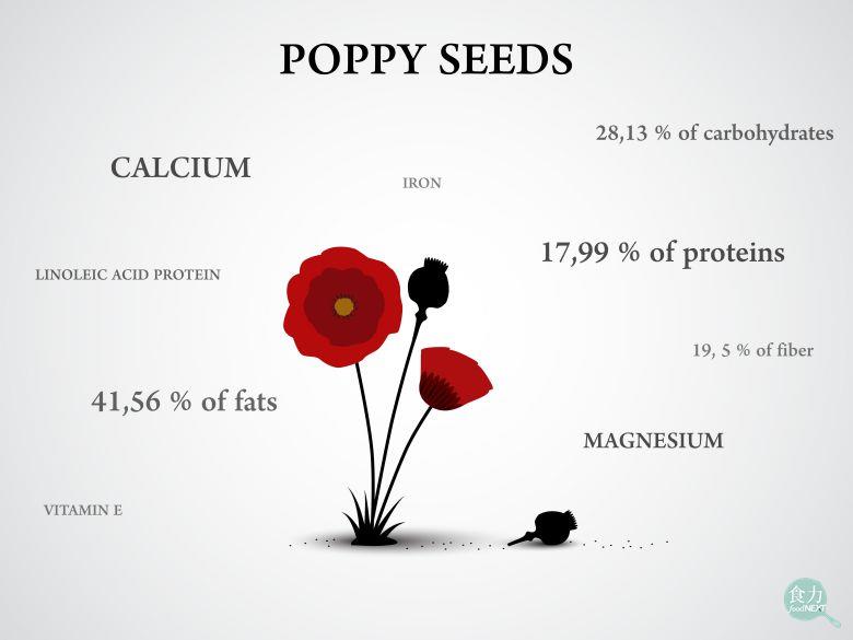 鮮紅花瓣是民眾對於罌粟留有的印象,其所結成的果為提煉嗎啡毒品的原料,而罌粟殼為罌粟果實乾燥後的果殼,同樣具有嗎啡成分。罌粟籽則是果實中的籽,相較於罌粟花及罌粟殼而言,所含嗎啡成分已相對低,在國外部分國家,罌粟籽是常見且可使用的香料食材,但部分國家認為食用或多量食用仍可能對人體有害。使用罌粟籽作為香料食材的國家,主要認定的使用標準為罌粟籽必須不具發芽活性。
