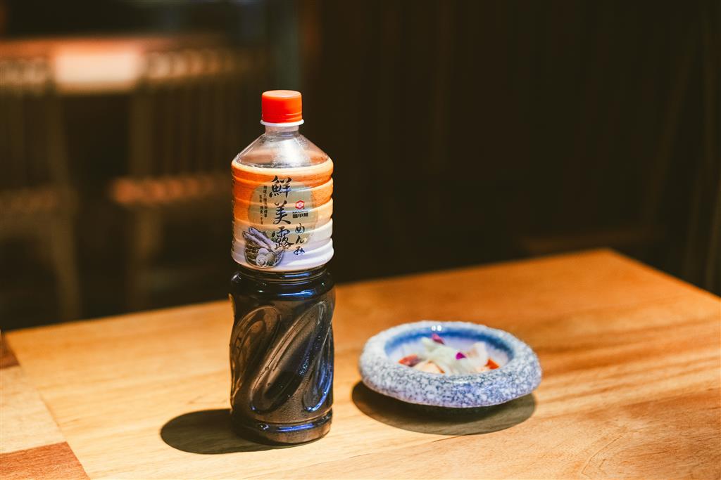 湯仲鴻用昆布、柴魚、貝柱和小魚乾等乾貨泡出鮮味醬油。但在餐飲業缺工的現今,他認為鮮美露有節省作業時間和人力的優點,且成本較低,可以成為餐廳的另一種選擇。
