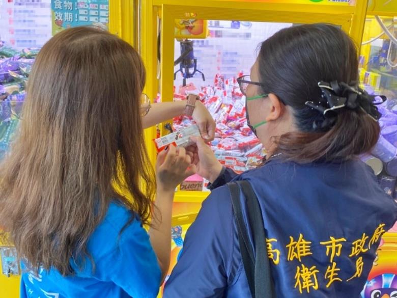 高雄市查獲5家夾娃娃機業者在販售食品機台外部,因標示不全、或未標示違反食安管理法,可處3萬元~300萬元罰鍰。(圖片來源:高雄市政府衛生局提供)