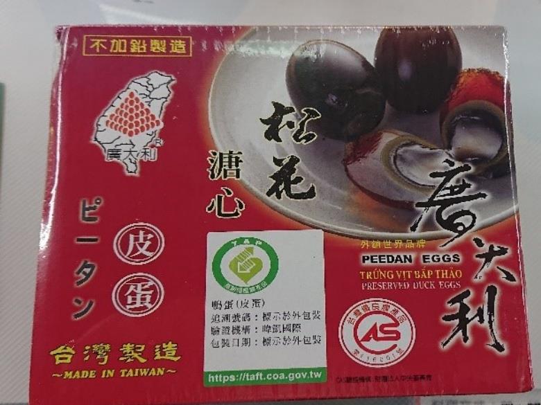 台北市衛生局表示,檢驗結果有1件家樂福台北錦州賣場的「廣大利松花溏心皮蛋」檢出重金屬銅含量不符規定,銅6mg/kg (標準:5mg/kg),已通知販售商及進貨端業者立即下架上述不符規定之產品,經追查不符規定產品來源為屏東縣業者,已移請屏東縣衛生局進行查辦。