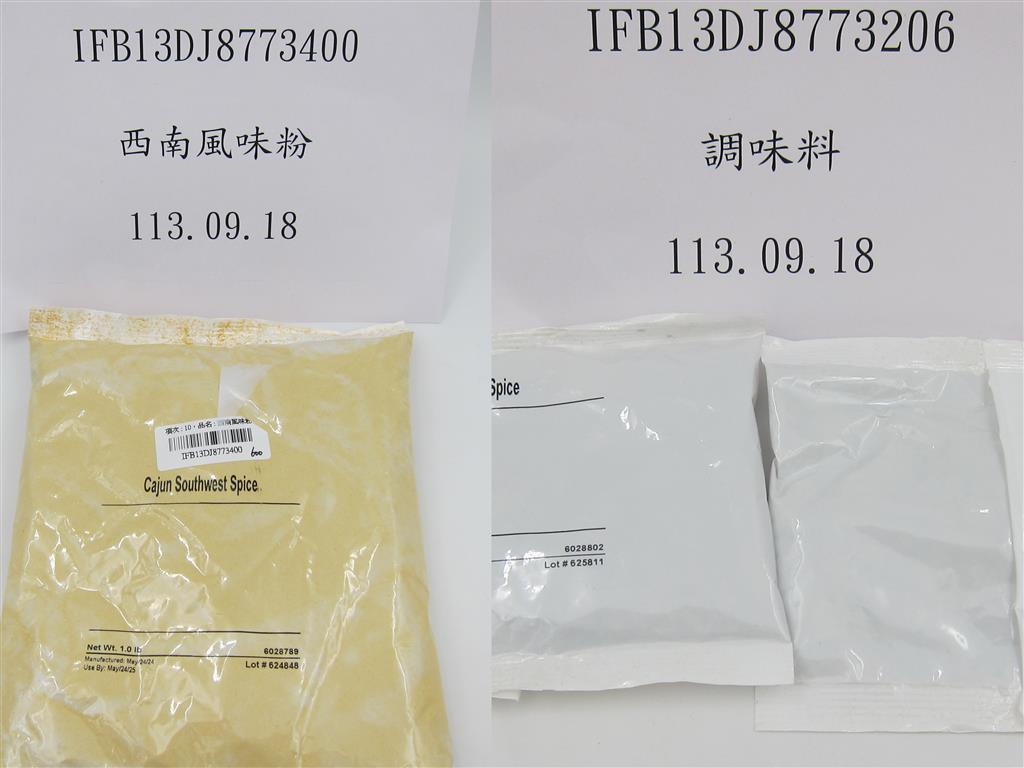 食藥署邊境檢驗不合格產品驗出「香港商赫士盟食品企業有限公司」進口之美國「調味粉」含有致癌農藥,該產品為多家知名餐廳採用,因規定需退運或銷毀。(圖片來源:食藥署提供)