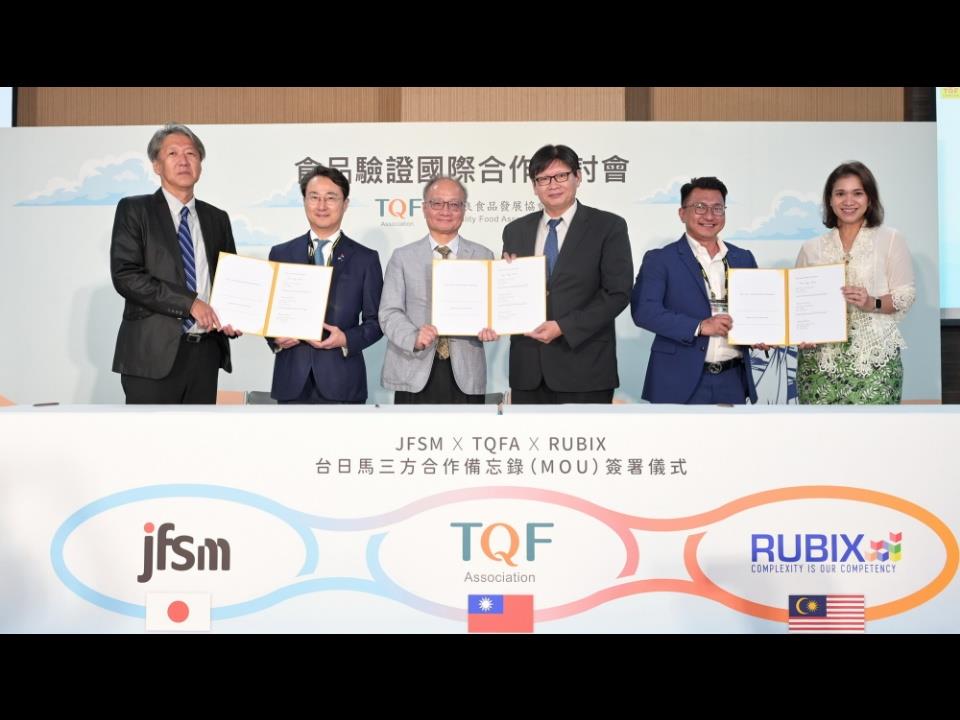 TQF協會為了加強國際鏈結,嘗試跨足東南亞市場,與馬來西亞清真驗證顧問公司RUBIX合作,協助有意進入馬來西亞清真市場的台灣食品業者,更易取得Halal驗證。另外為創造多國合作的機會,TQF協會促進與日本JFSM協會及馬來西亞RUBIX公司特在本次研討會,簽署三方合作備忘錄(MOU),建立台日馬之合作關係,並進一步共同探討多邊的食品安全驗證服務的可能性。