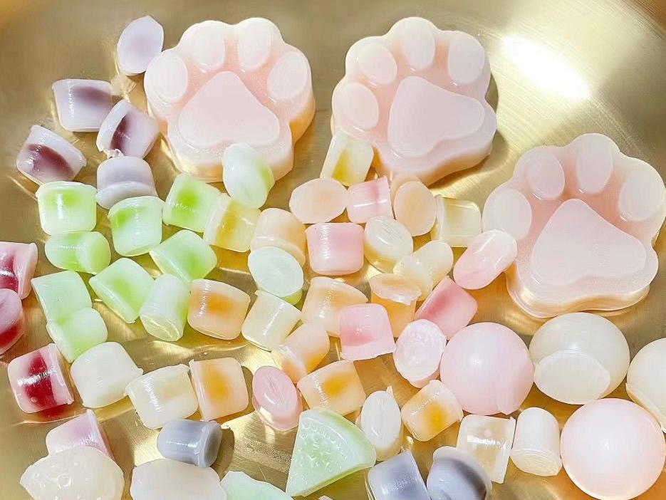 「蠟瓶糖」看似造型可愛的蠟燭或香皂,主打爆漿口感,硬的外層有如蠟,內餡則有果醬或糖漿流出。(圖片來源:網路截圖)