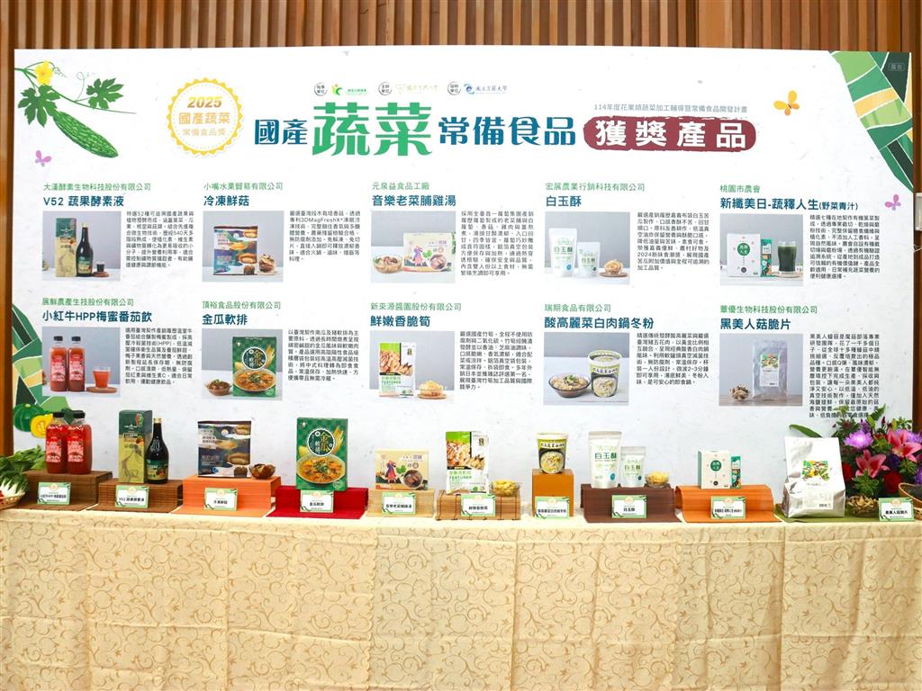 農糧署與中興大學共同辦理「國產蔬菜常備食品評選」,吸引全國28家業者及農民團體參賽,共計60件產品角逐,最終選出10項優質加工產品,涵蓋蔬果酵素、冷凍蔬菜、蔬菜飲品及休閒零食等類別。2025年12月6日至2025年12月7日將於臺北希望廣場設攤展示,並透過線上線下行銷擴大市場能見度。