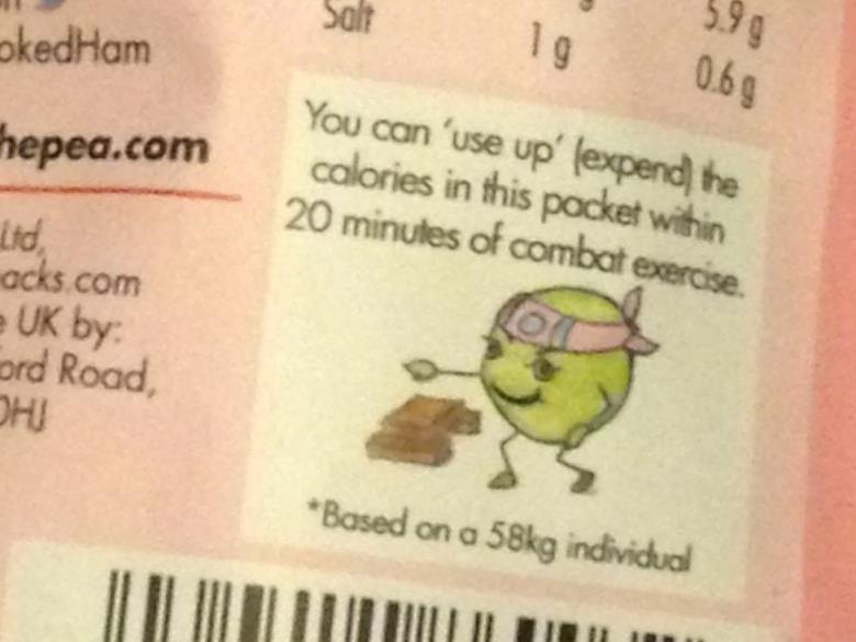 英國皇家公共衛生學會(Royal Society of Public Health,RSPH)提倡在食品上標示運動標籤(Activity equivalent calorie label),透過標示顯示食用後所需的運動消耗情況,提點健康飲食與健康的觀念。