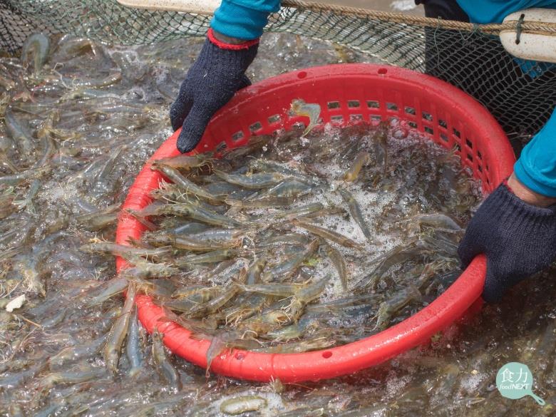 由於白蝦較草蝦較能抵抗白點病,白蝦產量逐漸超越草蝦,成為台灣主要的養殖蝦類。圖為來自台東的白蝦。(謝承學攝)