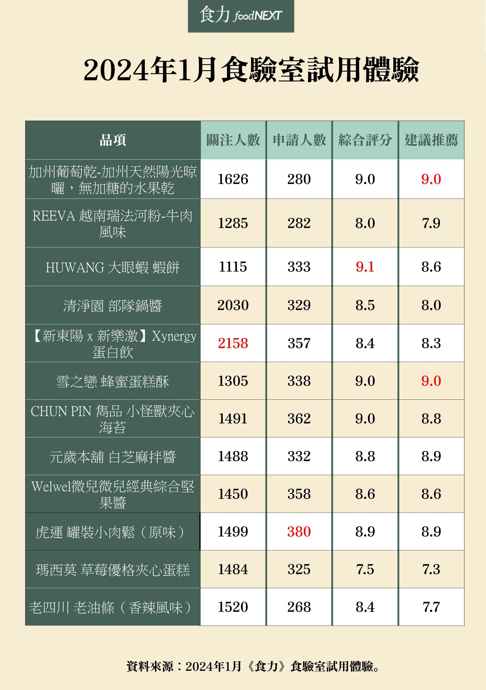 全台最大免費試吃平台「食驗室」每週上線多個不同產品檔期,提供給《食力》會員獨家的試吃體驗,每檔期則有10~100份不等的體驗機會。2024年1月共有高達12檔免費試吃活動,一起來看看1月「食驗室」有哪些精選項目!