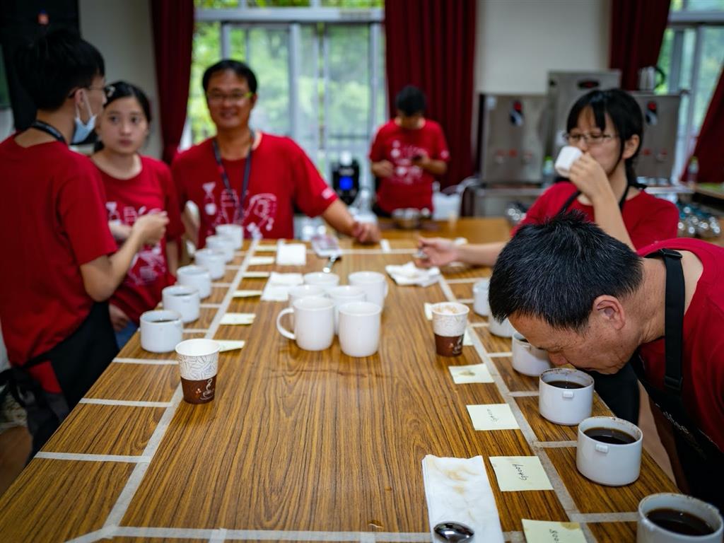 很多人來了3年,也很多人沒開店來當工作人員,甚至還有莊主第二代希望自己的孩子能透過服務比賽耳濡目染,他們都先擱置自己的工作,來確保這個一年一度的活動能夠順利。更令人感動的是,他們也爭取到每次可以喝到比賽咖啡的機會,能夠了解別人的表現、了解產區的狀況,所以儘管這麼忙,複賽之後也都有後勤專用桌,讓他們撥出一點空窗,快速品嚐複賽樣本。這絕對是一個很棒的自我學習機會。
