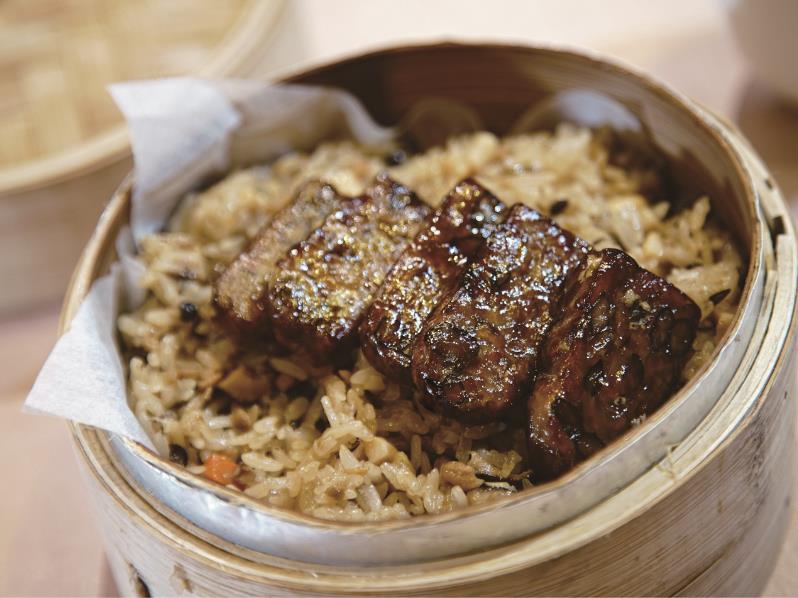 當這些植物性蛋白進到餐廳時,主廚們是如何運用呢?綠色餐廳三時之聚主廚張文騰長年以生態廚師的精神,發表了特別的「植物基鵝肝天貝」,植物基鵝肝料理除了是替代肉類的環保食材,也是人道食物。由於傳統鵝肝的產出,是在餵養鵝隻時強行灌食糧食,受到友善畜牧的道德挑戰,但現在有了植物基鵝肝,解決了人們在口慾及動保議題之間擺盪的為難,絕對是一道低碳且好吃的蔬食料理。而以紅蟳米糕聞名的台南阿霞飯店第3代吳健豪主廚,為了此次論壇嘗試了天貝、植物絞肉和扁豆3種高蛋白食材,首度發表的「醬燒天貝米糕」,將天貝呈現外酥內軟的口感,搭配阿霞特製醬汁,是一道令人回味的豐富蛋白質料理,讓阿霞飯店的經典料理米糕也展現出低碳永續特色。