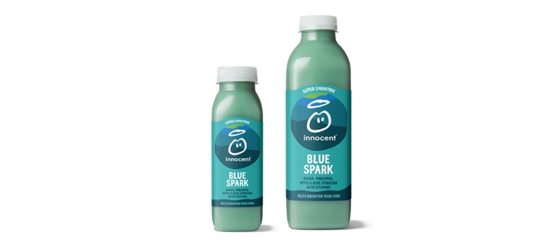 innocent推出的藍色果汁中添加了「藍藻」。(圖片來源:FBIF提供)