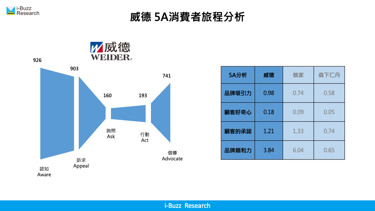 根據5A分析與品牌聲量交叉觀察,威德在品牌吸引力及顧客好奇心遠超出競品。(圖片來源:i-Buzz網路口碑研究中心提供)