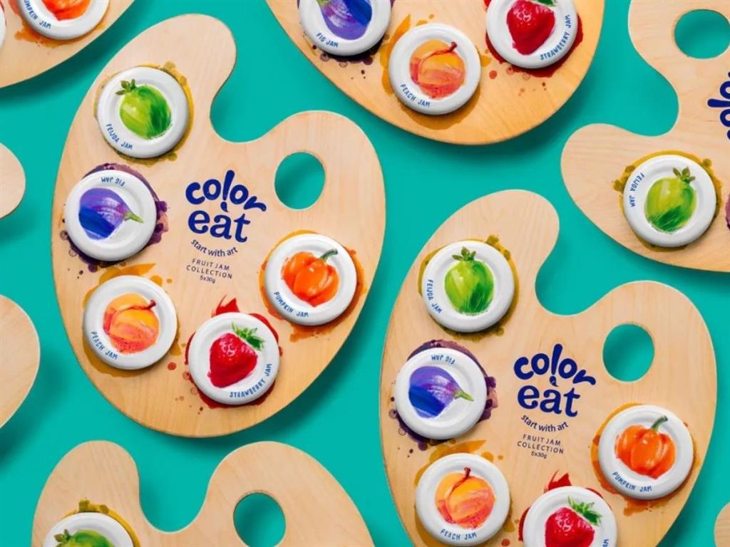 設計機構創新性地將早餐果醬與畫家手中的調色板結合,每個「調色盤」包裝都可放置5種不同口味(草莓、無花果、南瓜、桃子和斐濟果)的果醬,糖分攝入剛好符合推薦攝入量。這些美味的果醬就像彩色的顏料,孩子們可以使用勺子作為畫筆,在畫布一般的吐司上發揮想像,隨意揮灑。吃早餐的同時也激發了孩子的想像力與創造力。