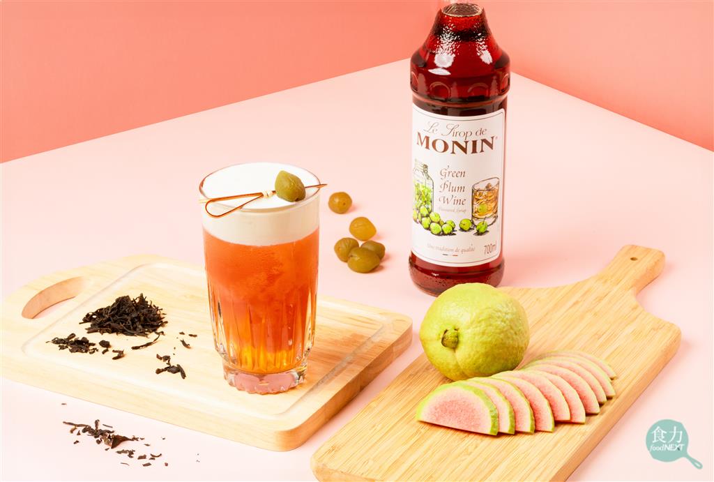 「紅心芭樂梅酒風味綠茶(無酒精)」即是同時使用多種熟悉風味組合成的創新飲品。基底使用茉香綠茶,添加無酒精梅酒風味糖漿,以青梅的酸甜滋味喚起春末夏初的季節氣息,搭配有強烈本土復古感的紅心芭樂,堆疊出果香清爽與迷人色澤。最後再帶上香甜的梅酒凍、清爽系的奶蓋,讓飲料更層次分明,在懷舊元素中有更多的新奇,引領人們進入時光隧道,在熟悉感中獲得滿足。